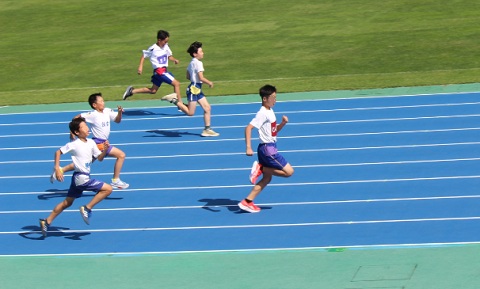 子どもたちは、他校の同級生と競い合いながら、これまでの練習の成果を発揮して、自己ベスト記録更新を目指しました。