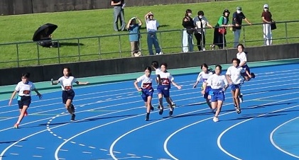 新発田市と聖籠町の小学校16校の6年生が参加する親善陸上記録会が行われました。種目は、全員参加の100メートル走と、学校のクラスごとに男女1チームずつ選抜の4×100メートルリレーでした。