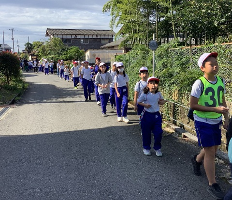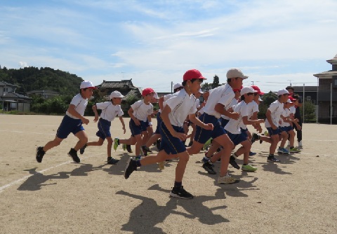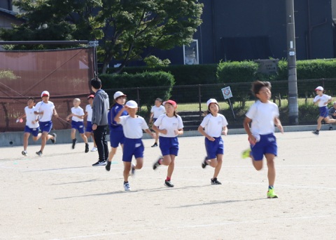 10月上旬に、グラウンドで持久走記録会を行いました。3日(金)は3,4年生、6日(月)は1,2年生、9日(木)は5,6年生でした。子どもたちは、体育の学習などで一定のペースを保って走ること、腕と脚の動きと呼吸を合わせることなどを意識して練習を積んできました。