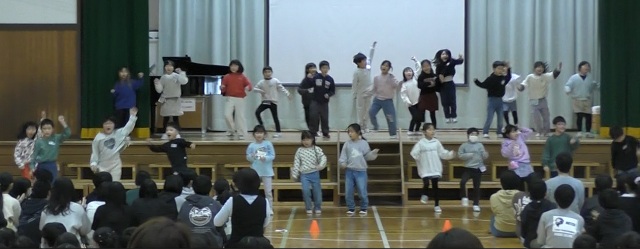 お世話になった6年生に感謝の気持ちを伝えようと、5年生の子どもたちが中心となって、みんなで協力しながら、準備を進めてきました。当日は、1〜5年生の子どもたちから、6年生にありがとうの気持ちを伝える歌や合奏、ダンスや劇などの発表が行われました。