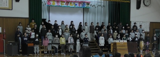 子どもたちは、これまで、歌詞の息継ぎの場所を意識しながら、声を頭の方に響かせるような歌声を大切にして、練習を重ねてきました。そして、自分たちの歌声に込められた優しい気持ちが伝わるように歌いました。ピアノ伴奏の児童も、みんなの歌声と気持ちを合わせて伴奏しました。